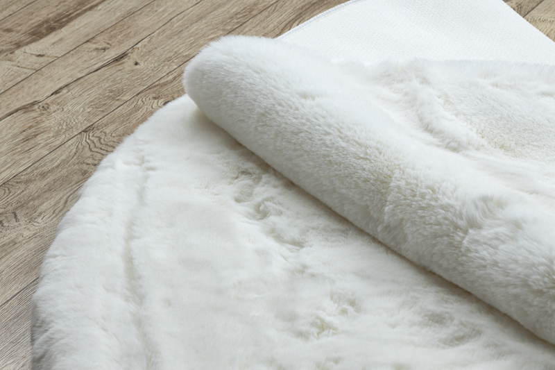 Tapis TEDDY cercle Shaggy Ivoire très épais, en peluche, antidérapant, lavable